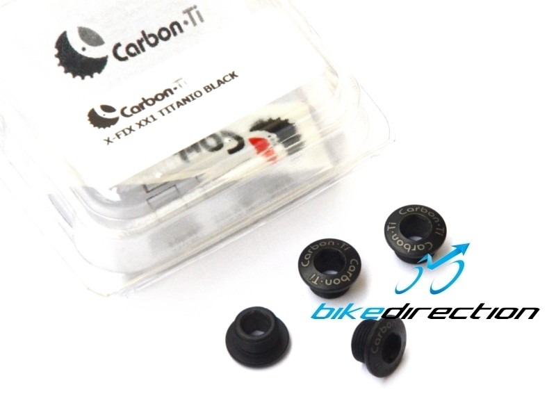 Le bussole Carbon-ti X-Fix in titanio nere sono viti per fissaggio corona singola monocorona tipo SRAM XX1 con girobulloni bcd76.